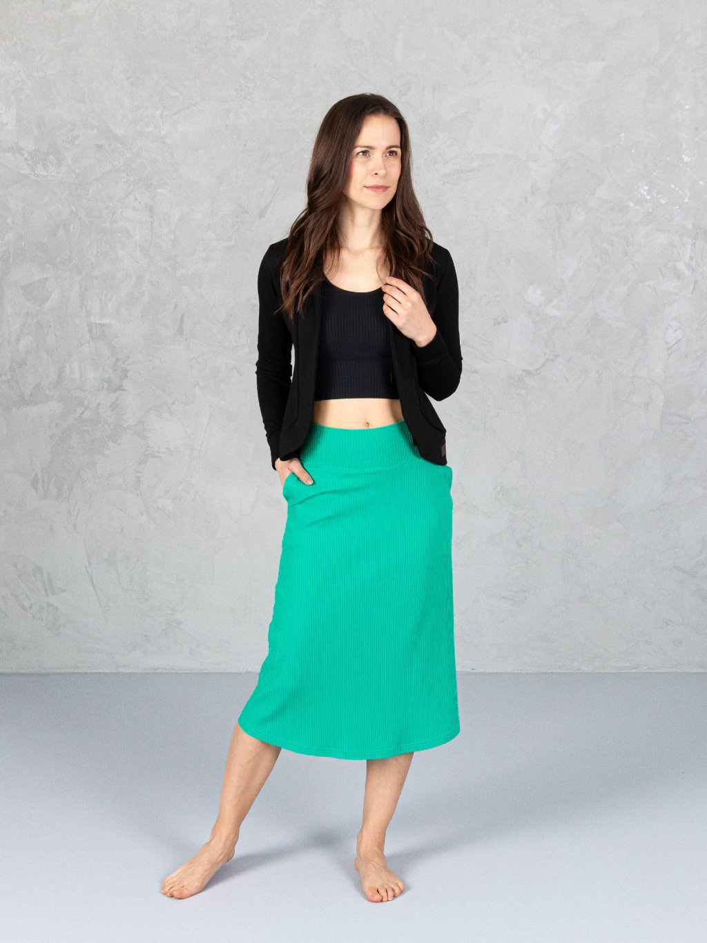 - Kratší délka lemující pas – krásně zvýrazní siluetu a nepřebíjí outfit.