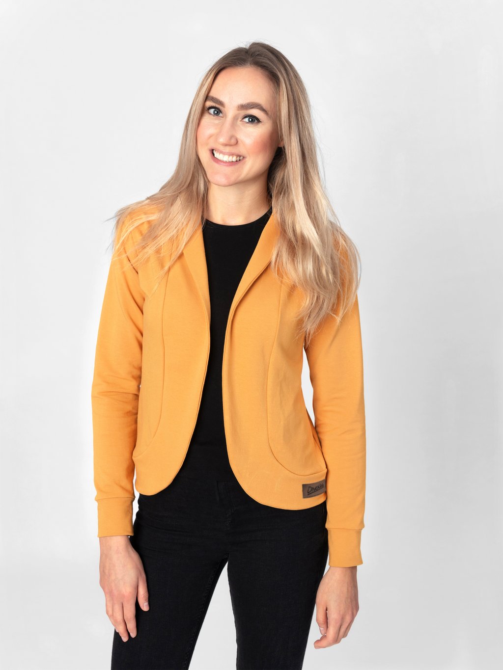 Sako BERRY kombinuje pohodlí s elegancí. Je ušité z příjemného bavlněného úpletu vyšší gramáže, který poskytuje komfort po celý den, zatímco jeho střih a kulatá léga dodávají outfitu sofistikovaný vzhled.