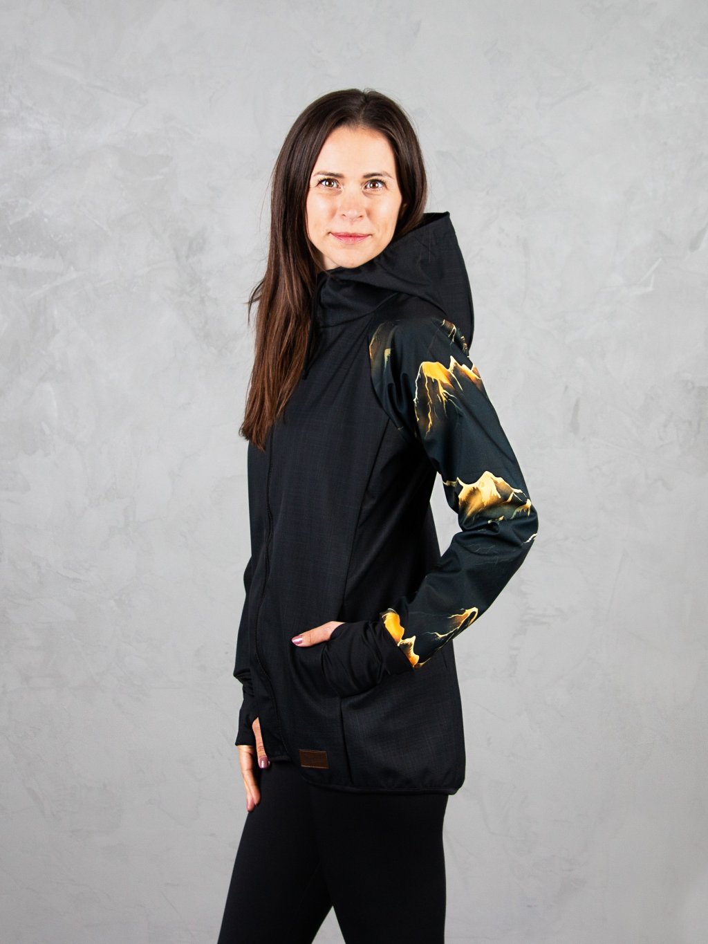 Bunda má prodloužený střih, který chrání záda před ofouknutím, a široké náplety s dírou na palec, díky nimž rukávy dobře drží a zahřejí i část ruky. Prostorná kapuce se stahováním ochrání před deštěm a větrem, zatímco skryté boční kapsy nabídnou prostor na drobnosti, které chcete mít stále u sebe. Design doplňují originální grafické prvky umístěné na jednom rukávu a boku.