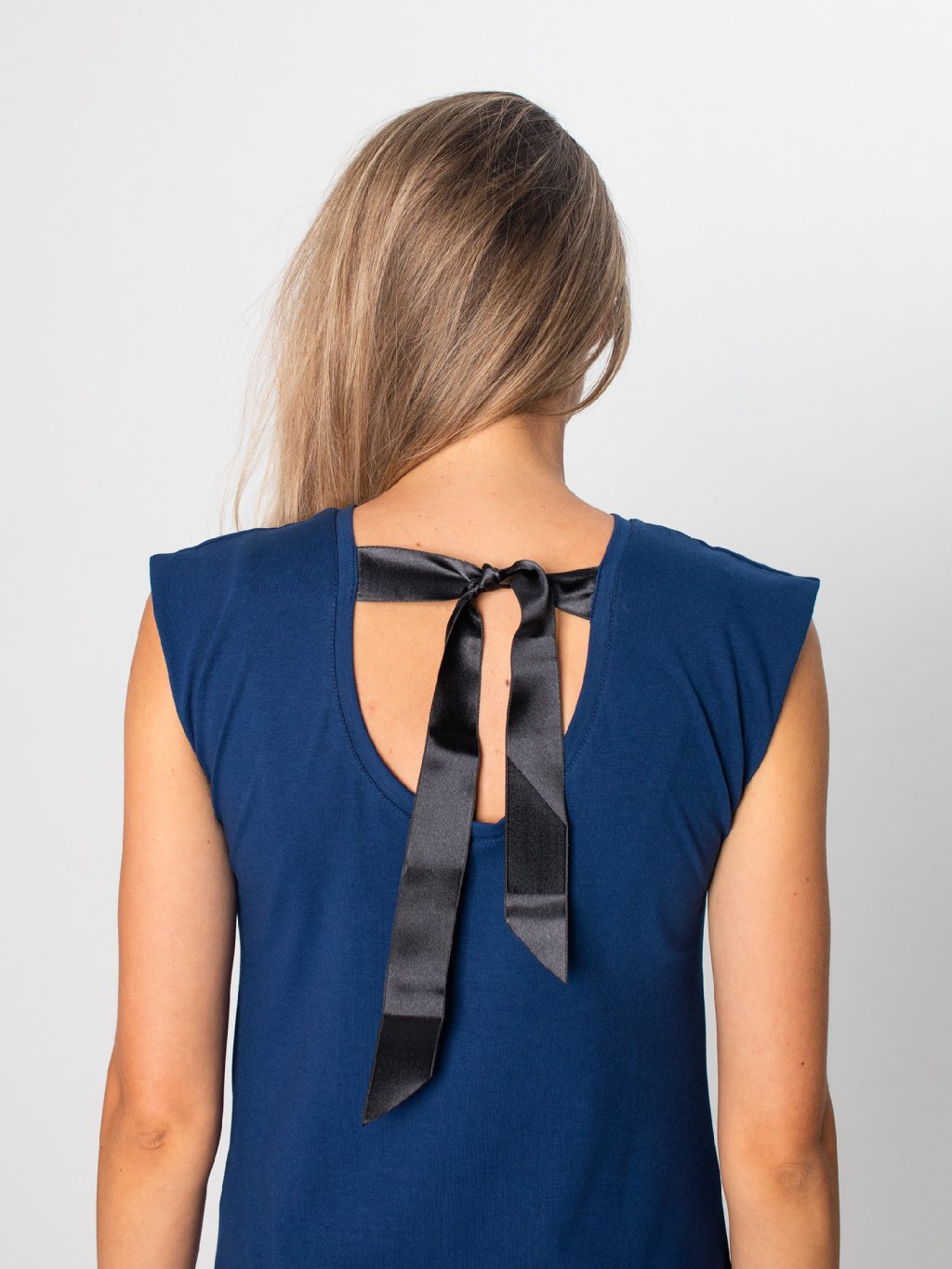 - Elegantní saténová stuha na zádech – ikonický detail, který dělá z jednoduchého trička výjimečný kousek