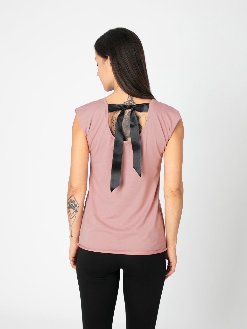 - Elegantní saténová stuha na zádech – ikonický detail, který dělá z jednoduchého trička výjimečný kousek