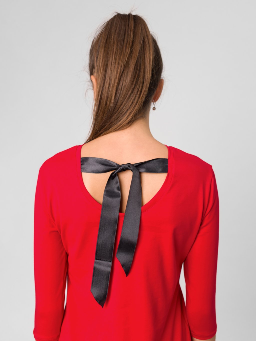 - Elegantní saténová stuha na zádech – ikonický detail, který dělá z jednoduchého trička výjimečný kousek