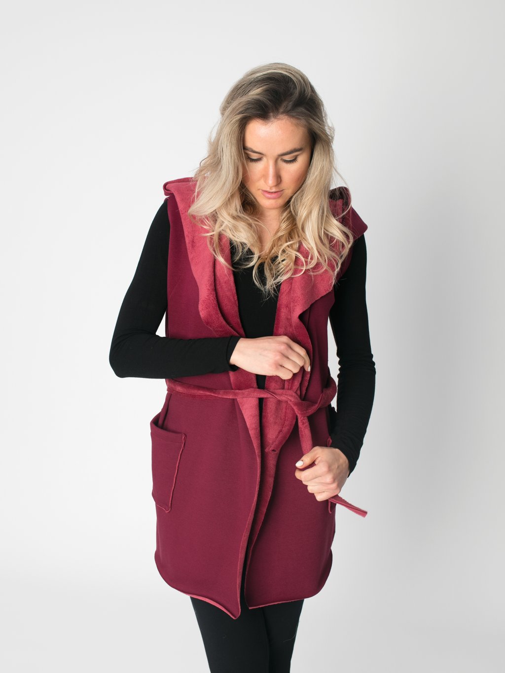 - Elegantní střih s páskem – decentní pásek zvýrazní ženské křivky a umožní nosit vestu jak zavázanou pro hřejivý efekt, tak volně rozevřenou pro ležérní look.